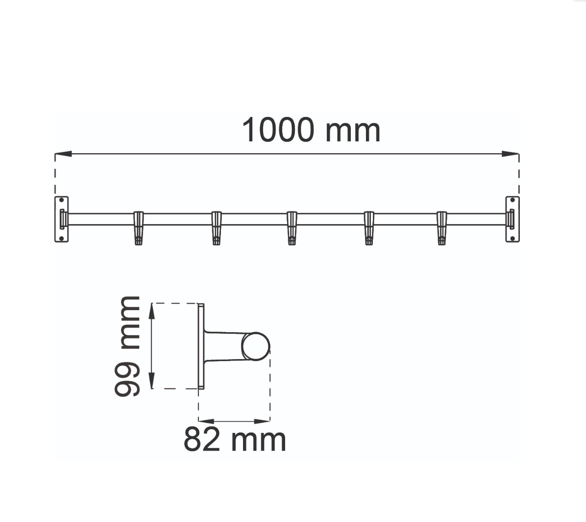 Denna kroklist med retro-stil monteras med två konsoler och kommer med 5st krokar för upphängning av diverse plagg.