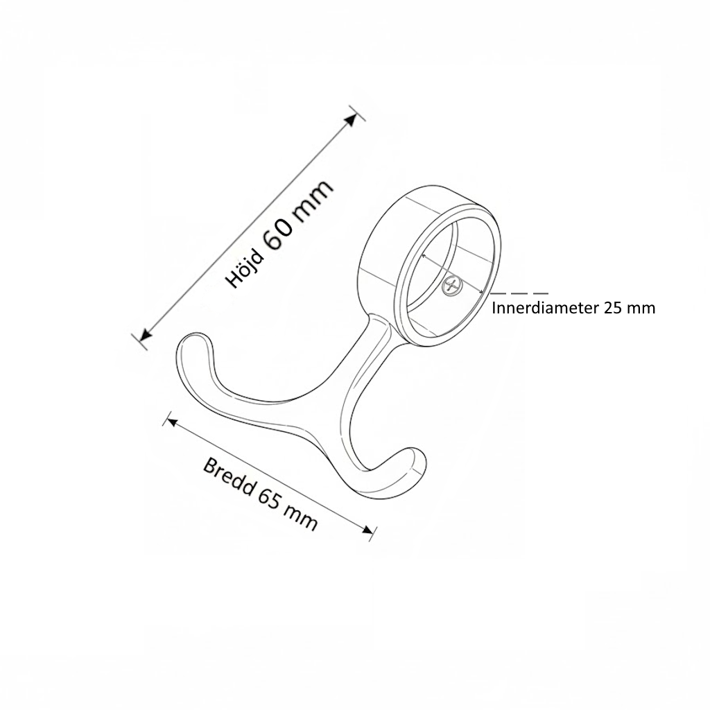 En snygg hyllkrok som används på rundstavar eller rör för hatthyllor.