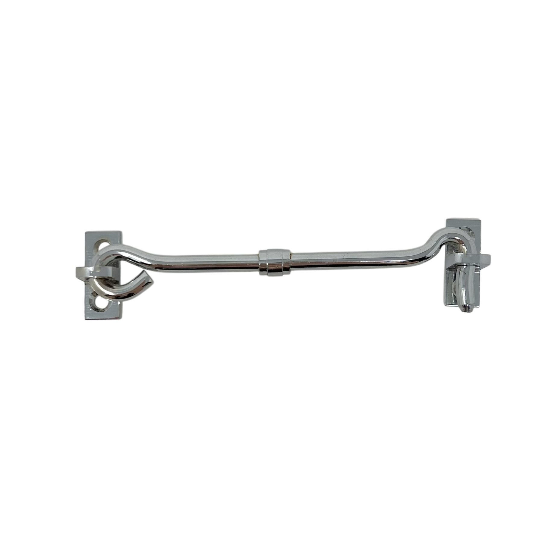 Kasthake/båthasp med en längd på 100mm i massiv förkromad mässing.