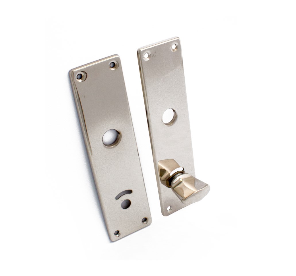 Långskylt med wc-vred för innerdörr i nickelfinish.