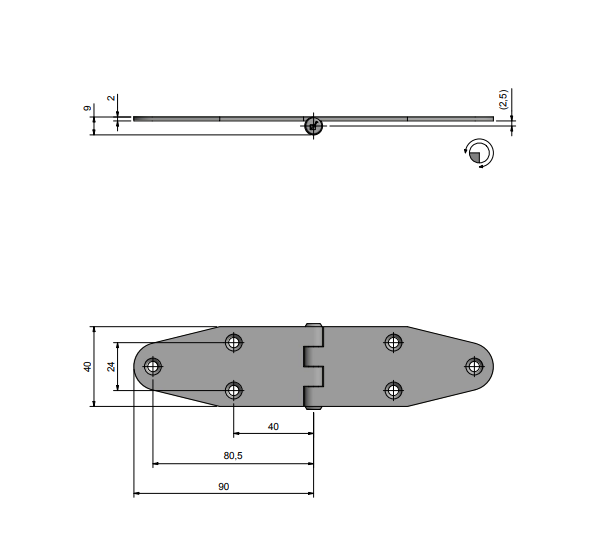 Ett ledgångjärn som är i elektropolerat, syrafast rostfritt stål.