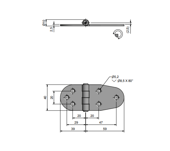 Ett ledgångjärn som är i elektropolerat, syrafast rostfritt stål.