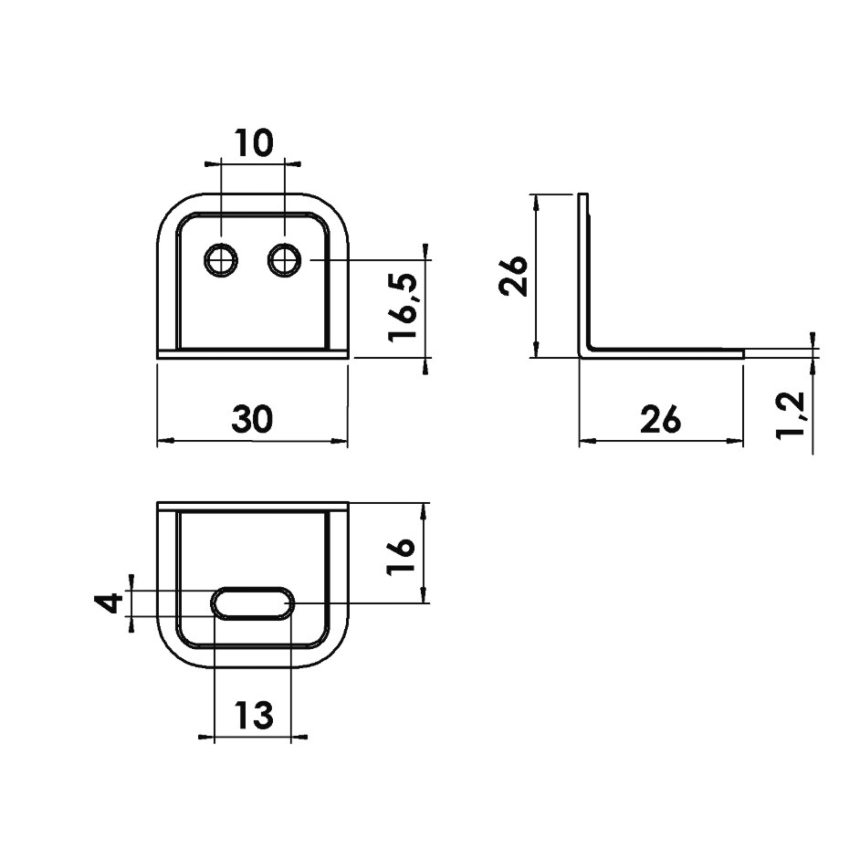 Vinkeljärn som kan användas till att sätta ihop trädetaljer i 90 grader.