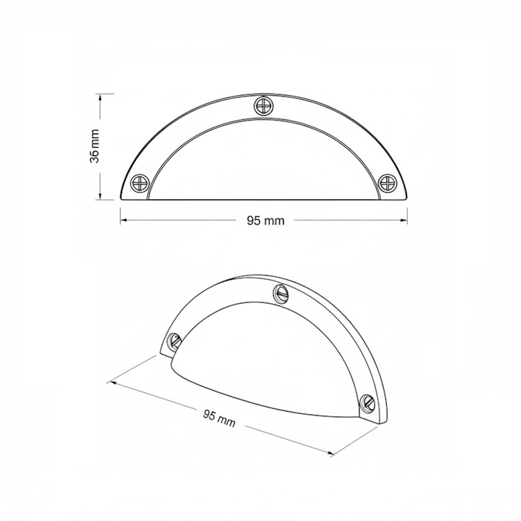 Skålhandtag i tennoxid för möbler, lådor, luckor och skåp.