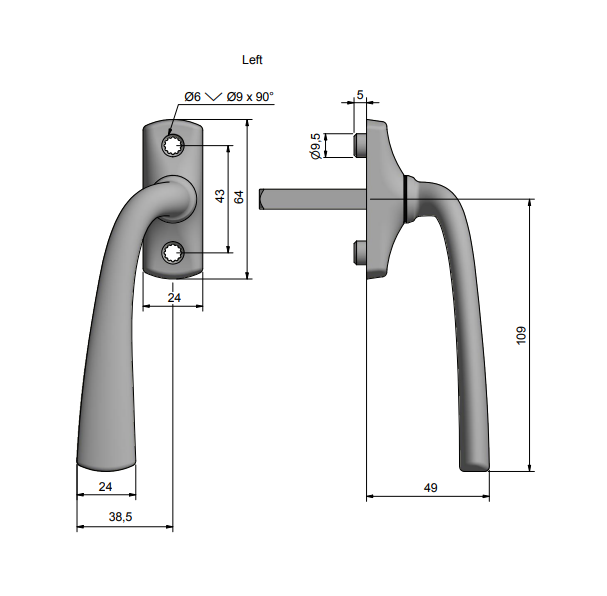 Dessa handtag används till fönster & balkongdörrar/altandörrar. För möjlighet att kunna låsa handtaget så finns tillhörande handtagsspärrar.