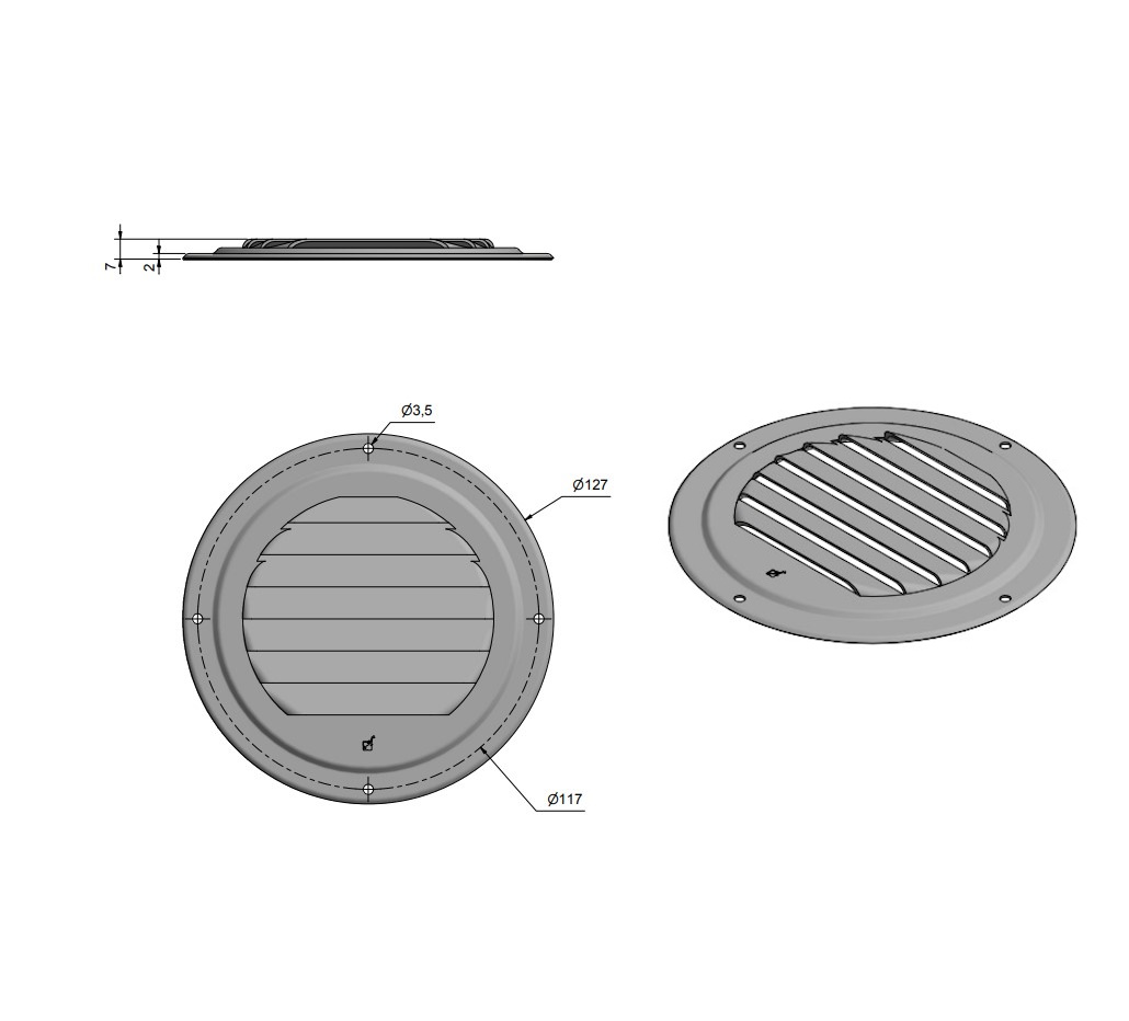 Ventilgaller i polerad mässing. Kan användas i förvaringsskåp eller hyttdörrar på exempelvis båtar för att förebygga fukt och mögel samt främja en god luftkvalitet.