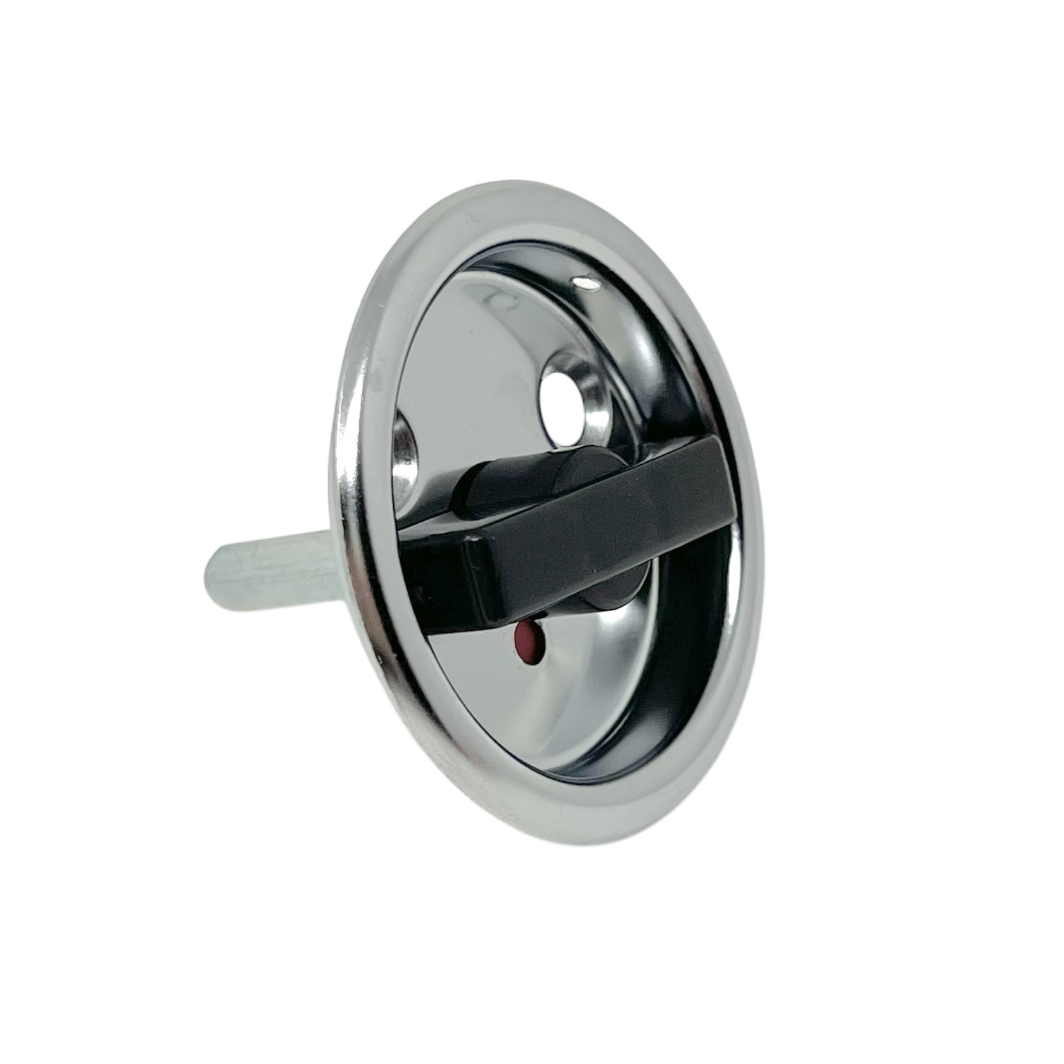 Ett Wc-vred i krom som du fäller in i dörren för din skjutdörr med röd och vit markering för upptaget eller ledigt.